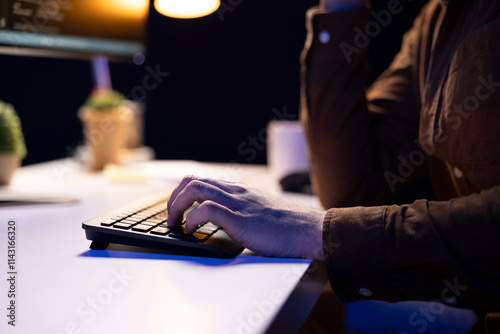 The watermark will not be included on Wall mural.: Cybersecurity specialist using computer to look for company security vulnerabilities and prevent mal
