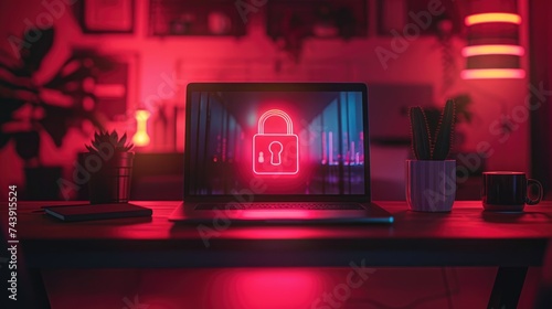 Wall mural cybersecurity. padlock on a desk displaying on laptop. cyber attack on computer network, virus, spyw - Wall murals Wall mural cybersecurity. padlock on a desk displaying on laptop. cyber attack on computer network, virus, spyw - Wall murals