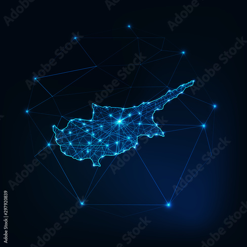 Wall mural cyprus map outline with stars and lines abstract framework. communication, connection concept.