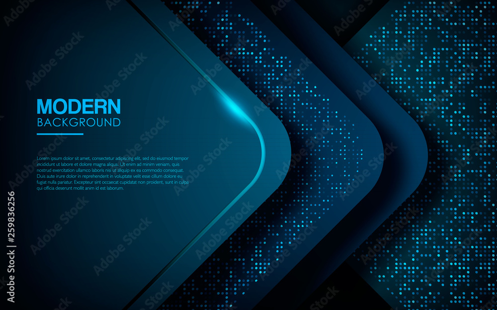 Wall mural dark abstract background with blue overlap layers. modern shape with sparkle light and blue glitters