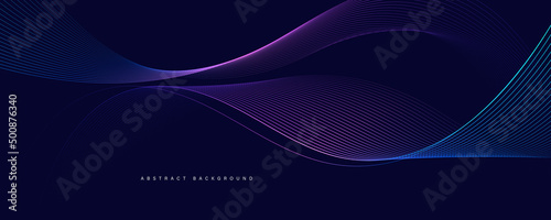 Wall mural : Dark abstract background with glowing wave - shiny moving lines design element - modern purple blue gr