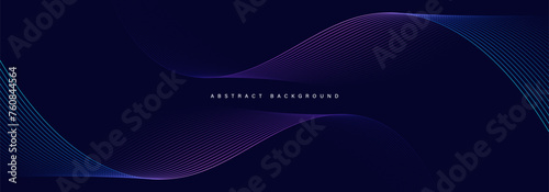 Wall mural dark abstract background with glowing wave. shiny moving lines design element. modern purple blue gr