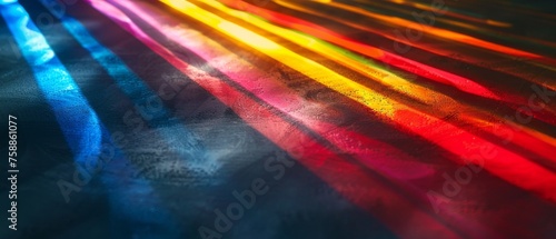 The watermark will not be included on Wall mural.: Dark abstract background with leaking rays of rainbow coloured light -