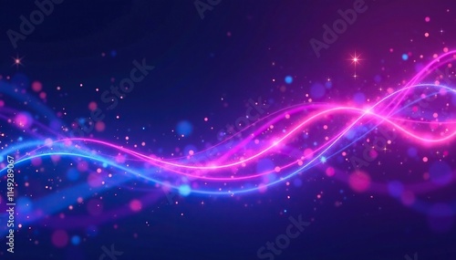 Wall mural : Dark abstract background with swirling purple and blue neon layers and twinkling lights, glowy atmos
