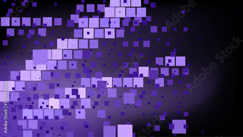 The watermark will not be included on Wall mural.: Dark abstract background with various purple squares scattered across - this digital-themed pattern c