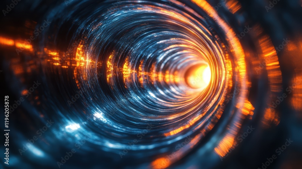 The watermark will not be included on Wall mural.: Dark abstract vortex with spiraling light trails and contrasting shadows, creating an illusion of de