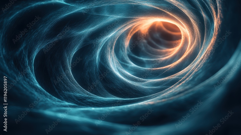 The watermark will not be included on Wall mural.: Dark abstract vortex with spiraling light trails and contrasting shadows, creating an illusion of de