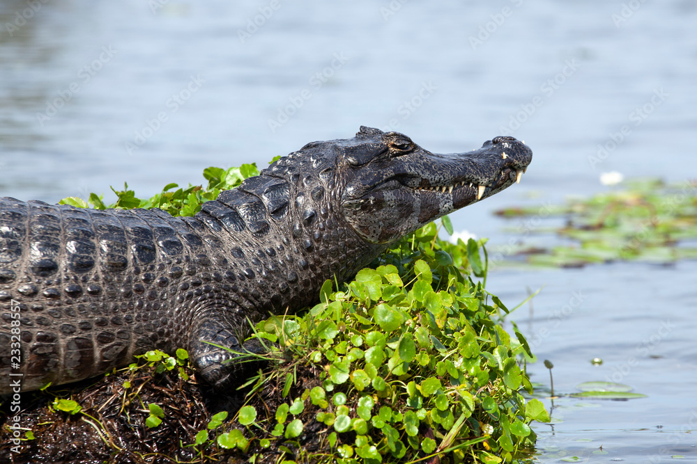 The watermark will not be included on Wall mural.: Dark alligator (caiman yacare) in esteros del ibera, argentina -