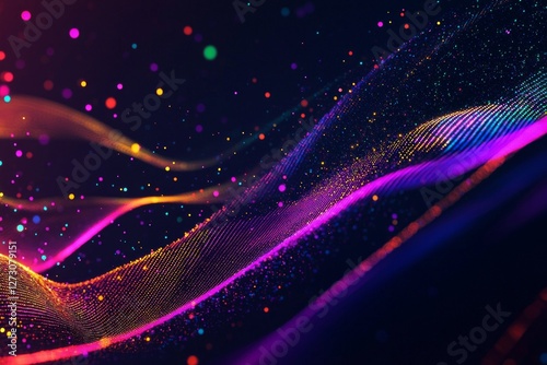 The watermark will not be included on Wall mural.: Dark background, colorful ribbon-like waves on top with small bubbles in between