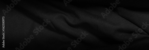 Wall mural dark background from a wavy fabric texture. wide panoramic black background with space for design. w