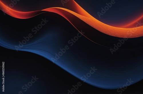 Wall mural dark background with abstract curved lines blue and orange modern and dynamic visual
