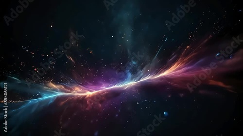 Wall mural : Dark background with colorful galaxy particles flowing, supernova sci-fi explosion, animated loop vi