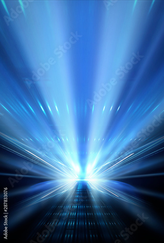 The watermark will not be included on Wall mural.: Dark background with lines and spotlights, neon light, night view - abstract blue background -