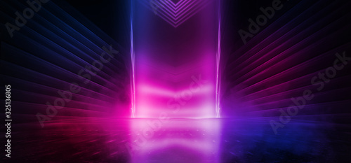 Wall mural dark background with lines and spotlights, neon light, night view. abstract pink background.