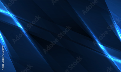 Wall mural : Dark blue abstract background with geometric dynamic glowing diagonal lines - vector abstract backgro