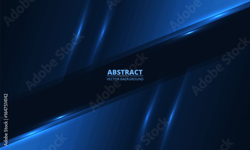Wall mural : Dark blue abstract background with geometric dynamic glowing diagonal lines - vector abstract backgro