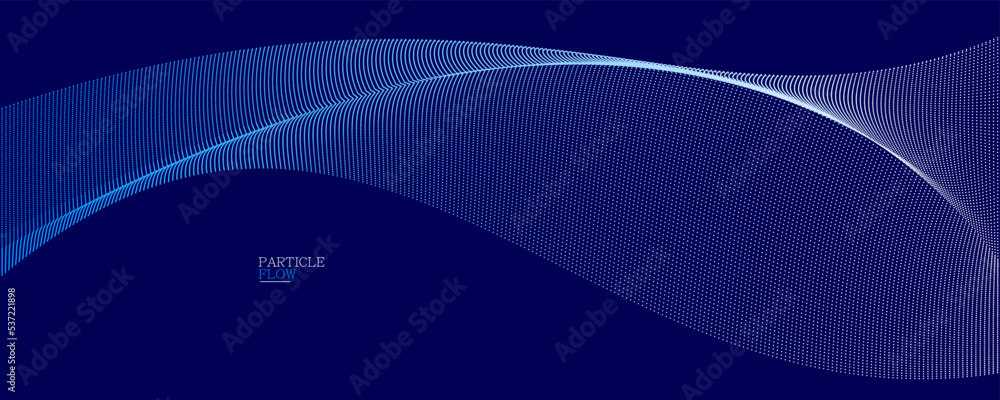 Wall mural dark blue airy particles flow vector design, abstract background with wave of flowing dots array, di