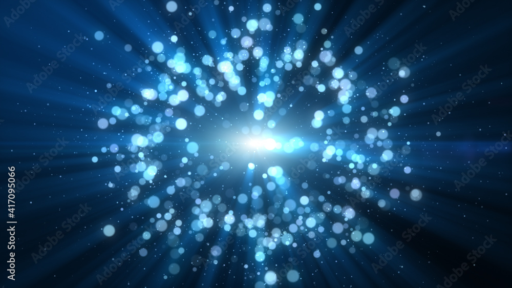Dark blue and glow particle abstract background light ray beam effect - Wall mural