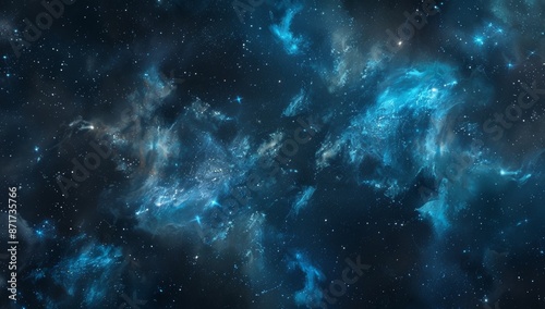 Wall mural dark blue background with stars and nebulae, creating an ethereal atmosphere for space background