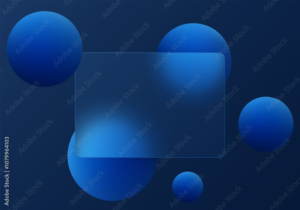 Wall mural dark blue background with transparent partition and floating spheres in glass morphism style. websit - Wall murals Wall mural dark blue background with transparent partition and floating spheres in glass morphism style. websit - Wall murals