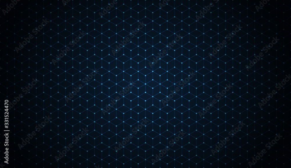 Wall mural : Dark blue blockchain technology background with dots and hexagons