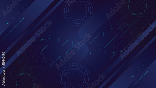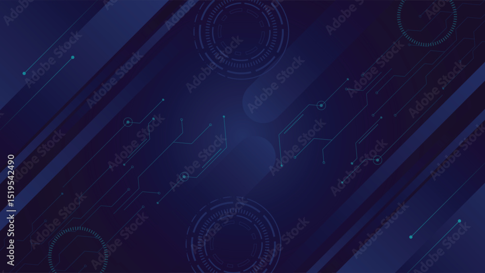 Wall mural dark blue futuristic tech background featuring circuit lines and abstract digital interface design i