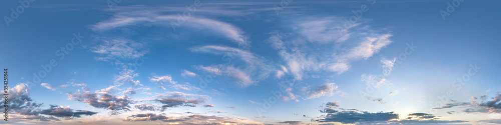 Wall mural dark blue sky before sunset with beautiful clouds. seamless hdri panorama 360 degrees angle view wit