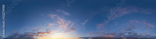 Dark blue twilight sky panorama with cumulus clouds - seamless hdr 360 panorama in spherical equianguWall mural