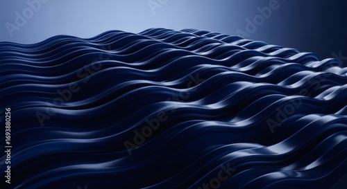 Wall mural dark blue wavy lines with subtle lighting creating a smooth flowing texture
