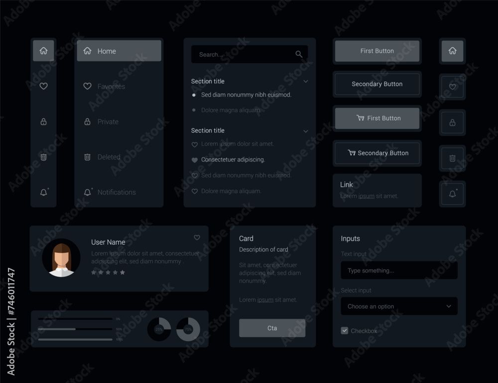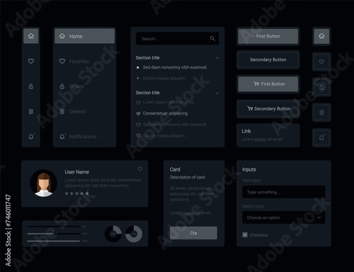 Wall mural dark collection of gray elegant ui ux elements. ux dashboard user panel template. user interface, ex - Wall murals Wall mural dark collection of gray elegant ui ux elements. ux dashboard user panel template. user interface, ex - Wall murals