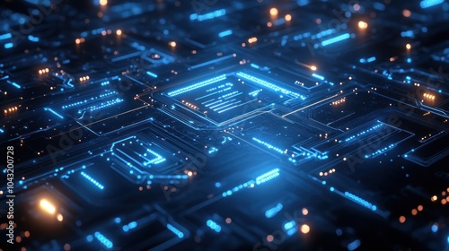 Wall mural dark futuristic grid pattern with glowing blue lines and subtle circuit details - Wall murals Wall mural dark futuristic grid pattern with glowing blue lines and subtle circuit details - Wall murals