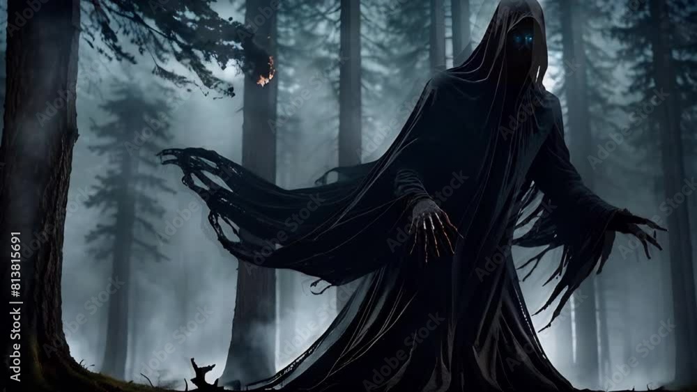 Wall mural : Dark ghost creature in haunted forest 4k loop features an a - i - generated video of a dark creature wi