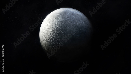The watermark will not be included on Wall mural.: Dark gray image of a half-illuminated moon in outer space -