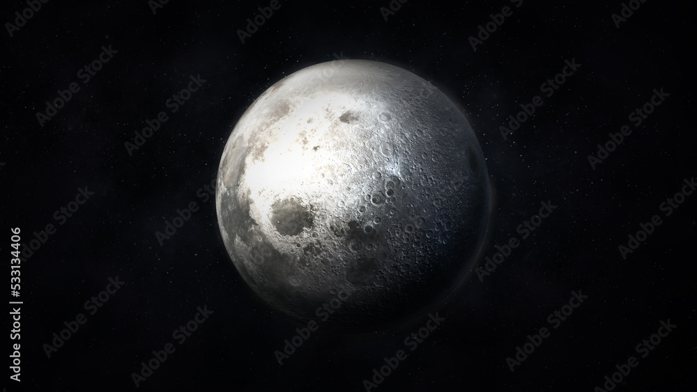 The watermark will not be included on Wall mural.: Dark gray image of a realistic moon in space -