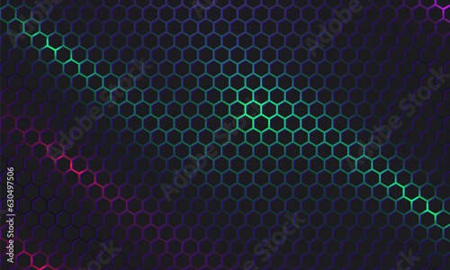 Wall mural dark hexagon gaming abstract vector background with green and red colored bright flashes. vector ill