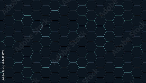 Wall mural dark hexagon pattern on blue neon background. hexagonal geometric pattern.