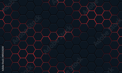 Wall mural dark hexagon pattern on red neon background. modern geometric shapes technology style.
