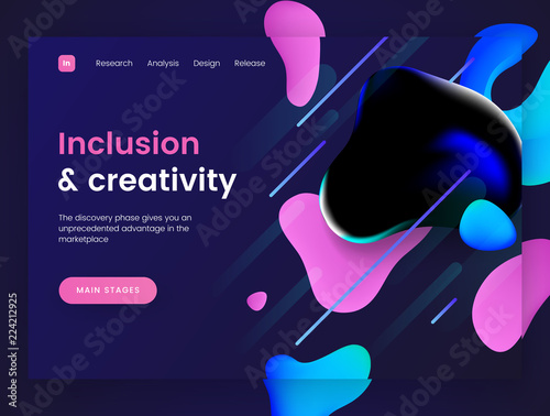 Wall mural dark landing page template with a liquid futuristic background - inclusion and creativity, can be us