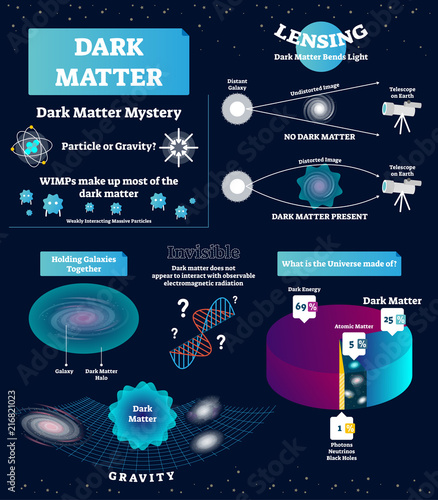 Wall mural dark matter vector illustration. educational labeled scheme with mystery, wimp, particle and gravity - Wall murals Wall mural dark matter vector illustration. educational labeled scheme with mystery, wimp, particle and gravity - Wall murals