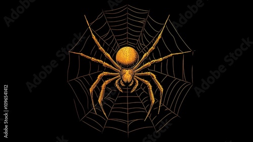 The watermark will not be included on Wall mural.: Dark minimal background emphasizing a golden spider spinning an intricate web