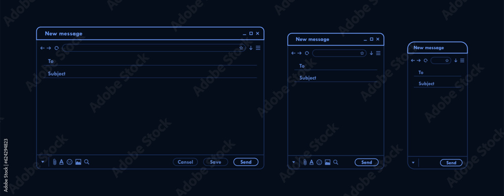 Wall mural : Dark mode email interface - outline mail window template for mobile phone, tablet and computer - inter