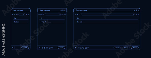 Wall mural dark mode email interface. outline mail window template for mobile phone, tablet and computer. inter