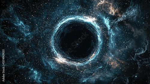 The watermark will not be included on Wall mural.: Dark portal with digits floating like stars around a black hole -