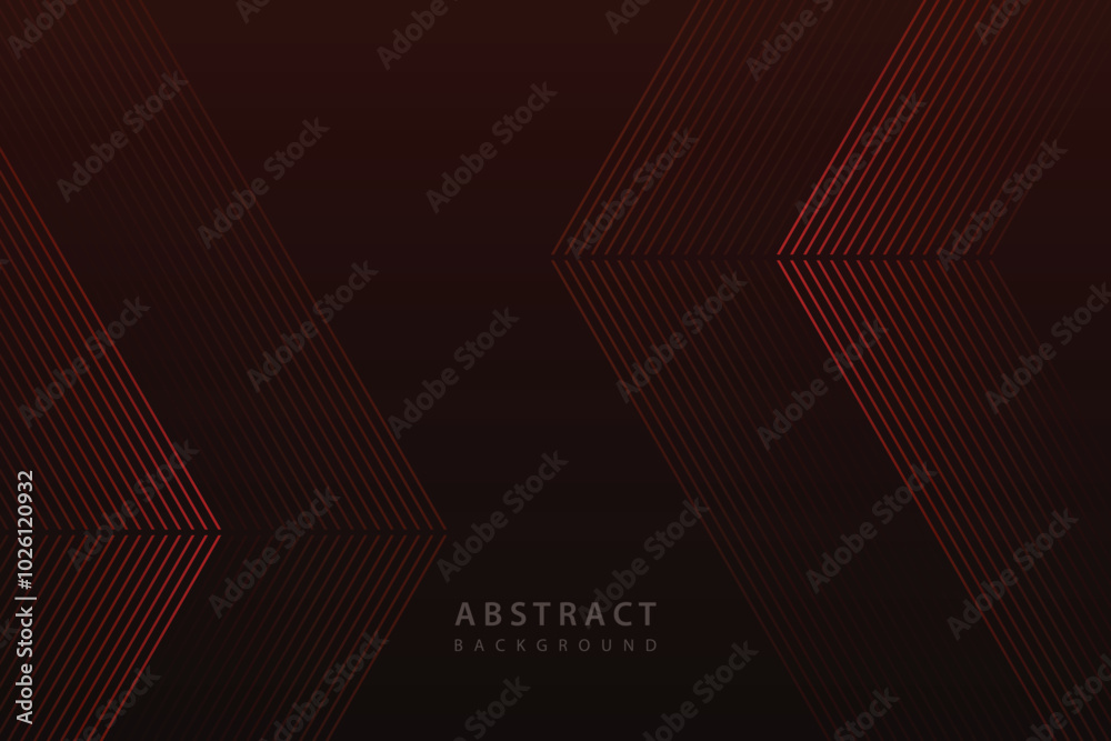 Dark red abstract background with modern transparent hexagon corner linesWall mural