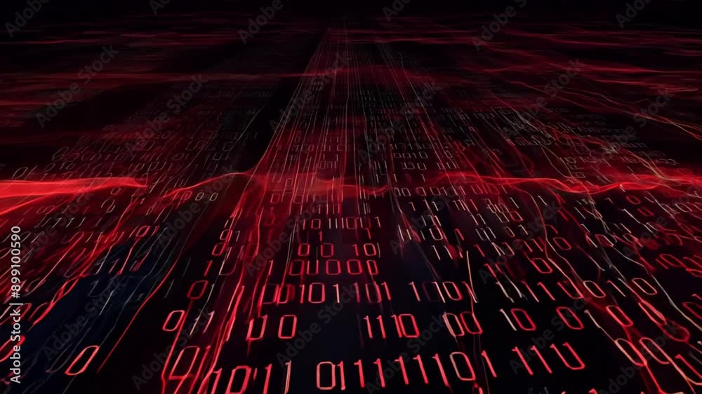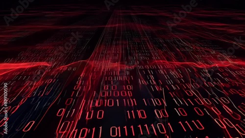 Wall mural dark red digital binary code matrix background. ai footage.
