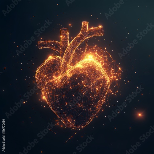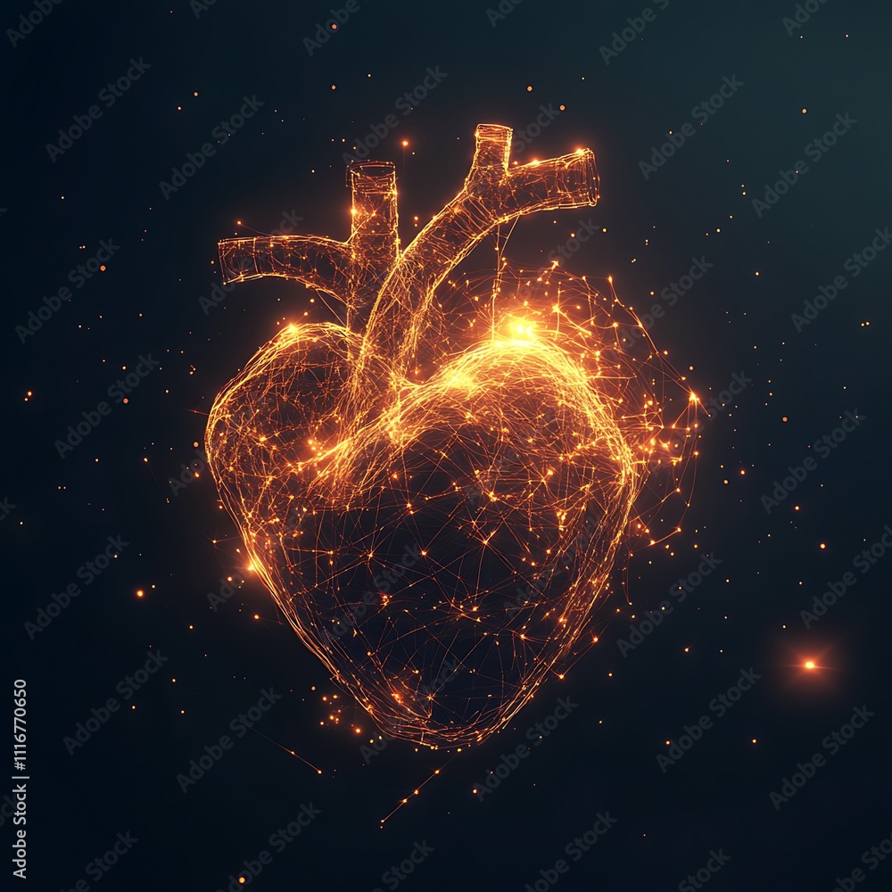 Dark setting with glowing 3d lines forming heart shape imageWall mural
