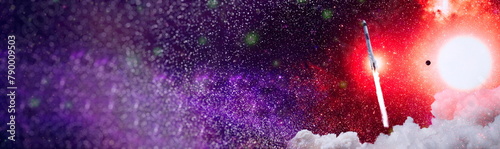 Dark space shuttle launch in the clouds with stars on background - spaceship flight - elements of this Wall mural