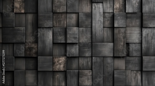 The watermark will not be included on Wall mural.: Dark textured wooden blocks pattern for background design