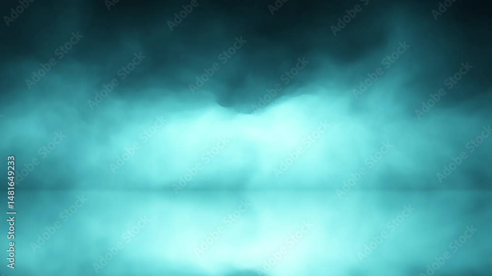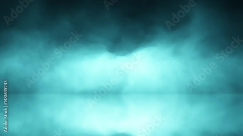 Wall mural dark turquoise smoke cloud with reflection on empty copy space stage loop animation. - Wall murals Wall mural dark turquoise smoke cloud with reflection on empty copy space stage loop animation. - Wall murals