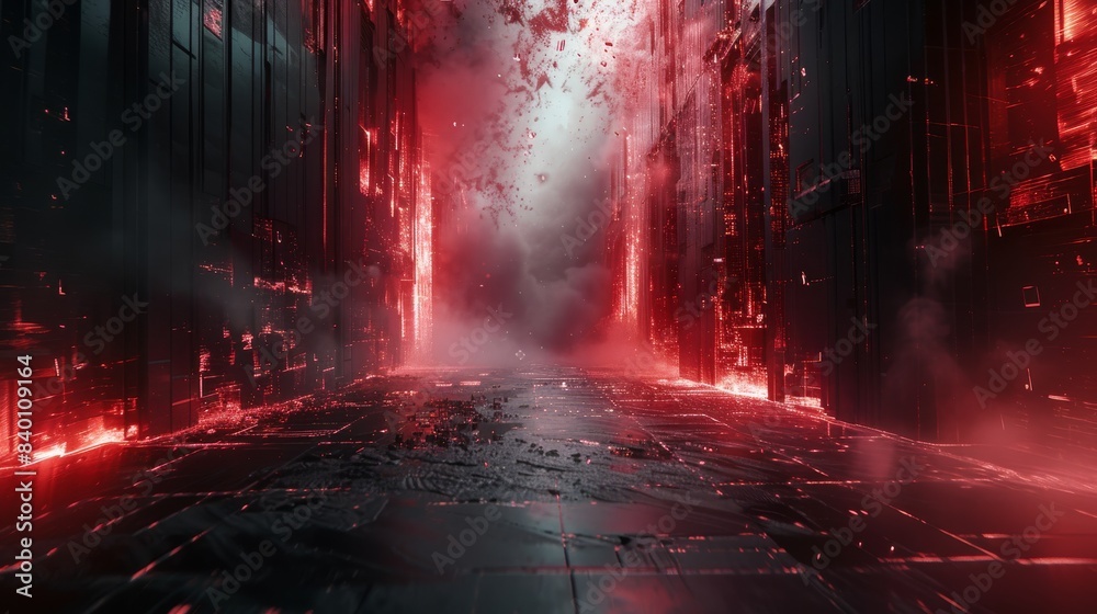The watermark will not be included on Wall mural.: Dark with a few hints of red and mysterious but pleasing abstract visuals for hard techno music - gen